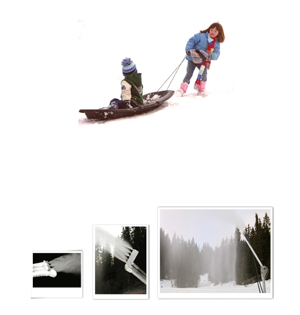 Vi har et mini system for snøproduksjon til sauna og spa.